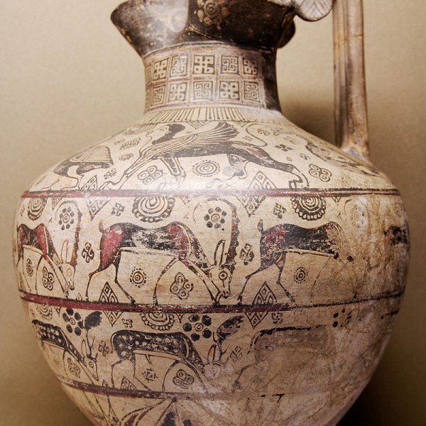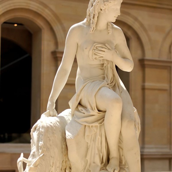 In classical myth, Amalthea is either a nymph who fed the infant god Jupiter with goat's milk, or the goat who suckled the infant. In another legend, the god broke one of the goat's horns, endowing it with the power to fill itself with whatever its owner wanted, making it the cornucopia or horn of plenty. The ancient city of Ebla in Syria contains a tomb with a throne decorated with bronze goat heads, now called "The Tomb of the Lord of the Goats".